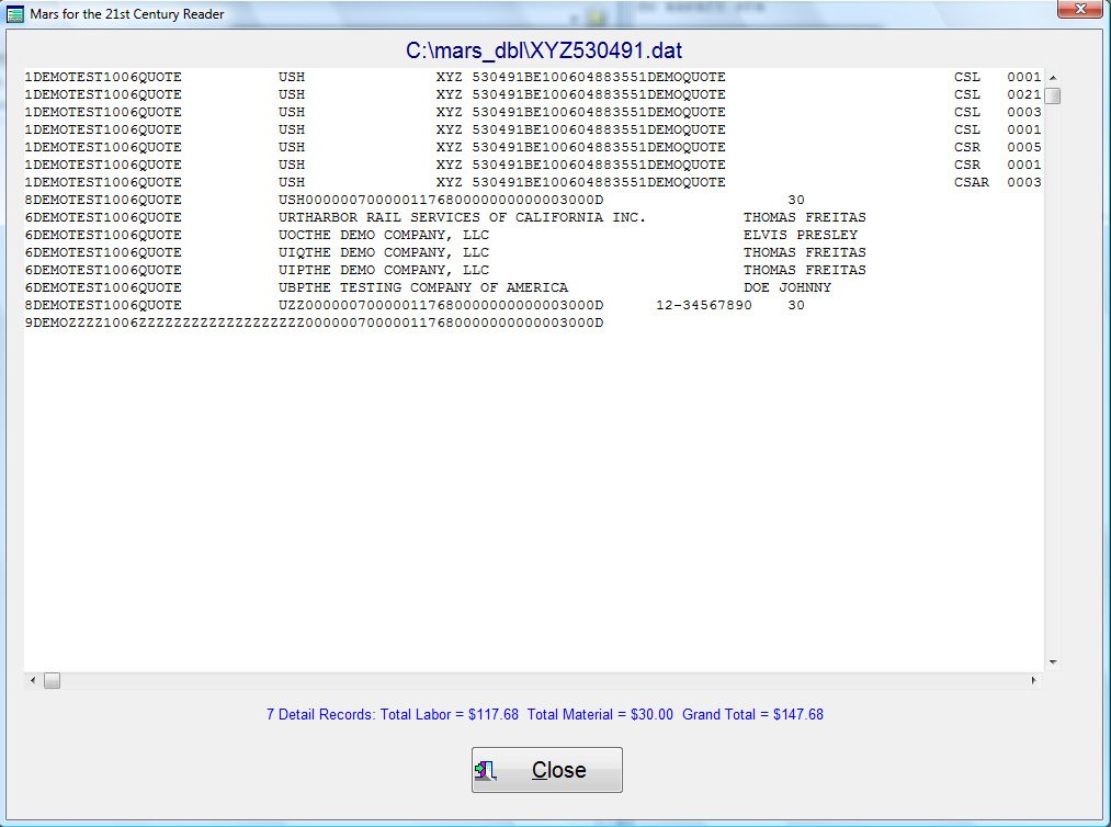 If you had selected the check box on the first page to view the exchange file when finished, a screen would appear stating that the file has been transferred usefully. It would also state that when you press the “OK” pushbutton, note pad would open with the created file and the screen below would appear with the information created.